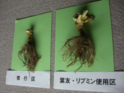 | 無農薬キャベツ の 作り方 実例は写真の通り 結城市平成20年 元肥時 リブミン(20kg 濃縮堆肥) 5袋 ・肥料は従来の約半分 以下 葉面撒布 葉友1000倍液10〜15日おき ・ ミクロフォル2000倍液は1回おき混用 根友(農業開発研究機構) TEL 0296−33−2702 FAX 0296−32−3702 |